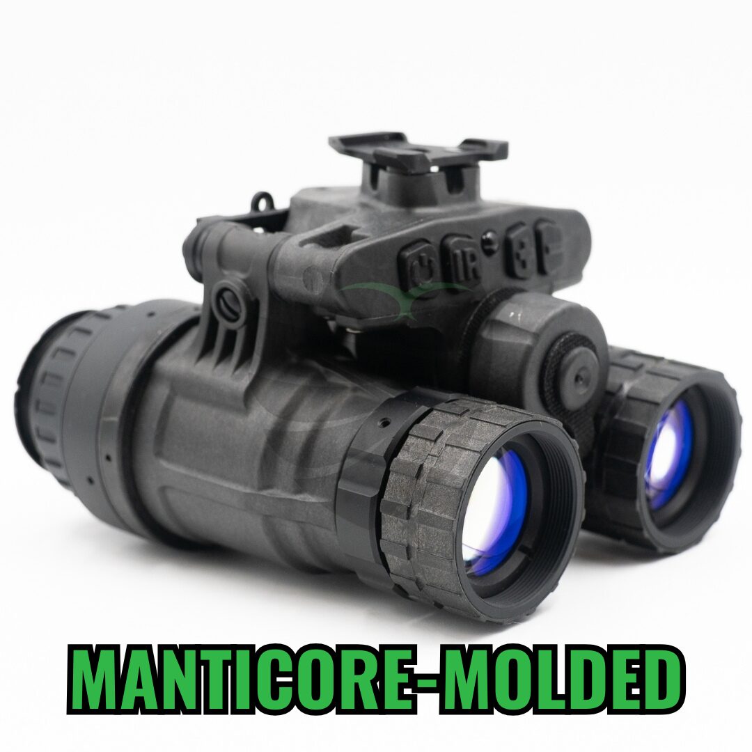 The Manticore is Nocturn Industries’ full-feature articulating binocular housing designed to balance capability, weight, and durability. Utilizing a molded polymer construction, it incorporates articulation, manual gain control, IPD stops, independent pod shutoff, an onboard IR illuminator, and an external power port. The Manticore offers a comprehensive feature set in a lightweight package and is backed by Nocturn’s lifetime no-questions-asked warranty.